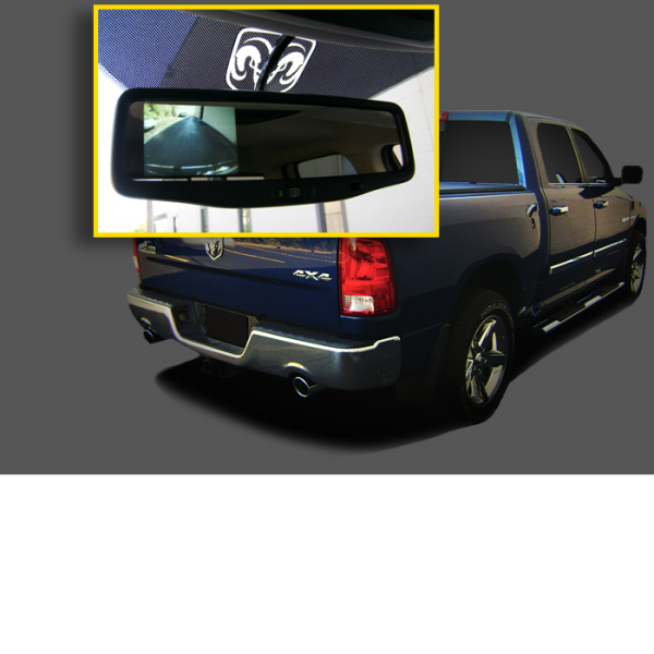 Add 20/20 vision to the back of your 2009-2012 Dodge RAM pickup with this complete integrated backup camera and 3.5” LCD display rearview mirror. Includes identical replacement rear-view mirror with no loss of vehicle features, factory-replacement tailgate handle with integrated Panasonic OEM-grade color camera, and all vehicle harnessing.